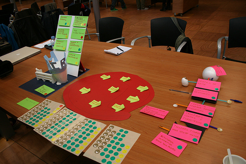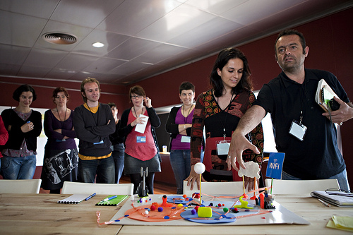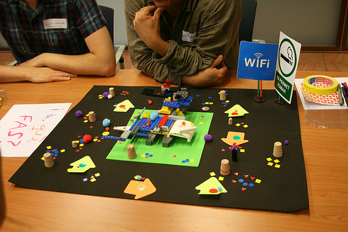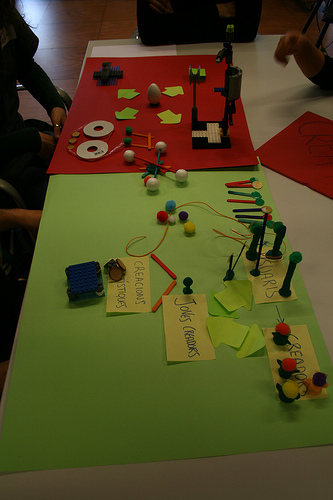 El día 6 de mayo realizamos el tercer taller de “Proyectos 2.0. Prácticas para instituciones culturales” organizado por el Centro de Cultura Contemporánea de Barcelona (CCCB) y el Citilab. Esta vez fue en Citilab, Cornellà. De nuevo, una treintena de participantes compartió sus saberes y sus deseos para acabar definiendo seis grupos de entre dos y ocho personas. Estos grupos trabajaron en la creación de prototipos con cartulinas, LEGO, plastilina… para acabar definiendo un proyecto participativo. A lo largo del día estos prototipos fueron la semilla que desencadenó grandes debates, que planteó situaciones de conflicto, que motivó a analizar unos pasos a seguir o que propuso una reflexión sobre las motivaciones para introducir la participación ciudadana en las prácticas de las instituciones culturales de nuestro entorno.