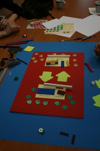 Durante seis horas profesionales de la comunicación, la divulgación, o la gestión, entre otros plantearon proyectos imaginarios donde incluían en mayor o menor grado propuestas de participación. En general, os prototipos establecían relaciones participativas con usuarios “artistas” aunque alguno de los grupos también abrió la participación a la ciudadanía en general. Una vez construído el proyecto imaginario con cartulinas, plastilina, palitos y pegatinas, los asistentes se dividieron en grupos para hacer de usuarios o de presentadores del proyecto. La tarde dio paso a la reflexión: ¿Qué era lo mejor que le podía pasar a cada proyecto?, ¿Qué era lo peor?, ¿Cómo conseguirían salvarse de lo peor y qué pasos deberían seguir? Y lo más importante ¿Por qué querían incluir participación a su proyecto? ¿Cuales eran los objetivos para que se vieran beneficiados por la participación? Todas estas preguntas nos condujeron a un pequeño debate… que no se acabó en la sala, sino que continuará on-line a través de un grupo de trabajo generado con todos los participantes a los cuatro talleres sobre prácticas 2.0 en instituciones culturales.