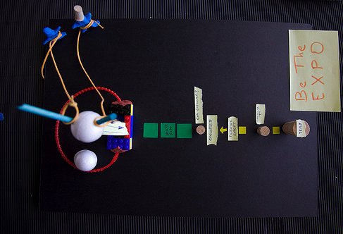 Durante los meses de abril y mayo, el equipo de Expolab está trabajando intensamente para poder hacer realidad los prototipos más votados, generados digitalmente en un mundo virtual como es Second Life. La idea es conseguir crear una exposición que haga un pequeño recorrido sobre la ciencia, la tecnología y la humanidad que hay detrás de los cambios que ha generado Internet y las nuevas tecnologías en nuestras vidas. Sin embargo, queremos llegar a construir una exposición con más de una lectura y queremos pedir a los visitantes que sean ellos quienes propongan itinerarios e incluso nos digan cómo utilizarían el espacio para realizar actividades y talleres en torno a estos contenidos .